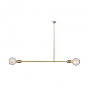 Tribeca two light pendant, T-shaped with brass rod suspension. Displayed in polished brass.